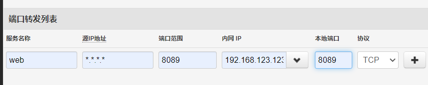 3.在有公网的情况下添加端口映射外部8089-内部网络8089,根据群里大佬@Hail Hydra说,这里端口一定要一样,不然也是无法加载样式,具体人太菜所以原因不明
