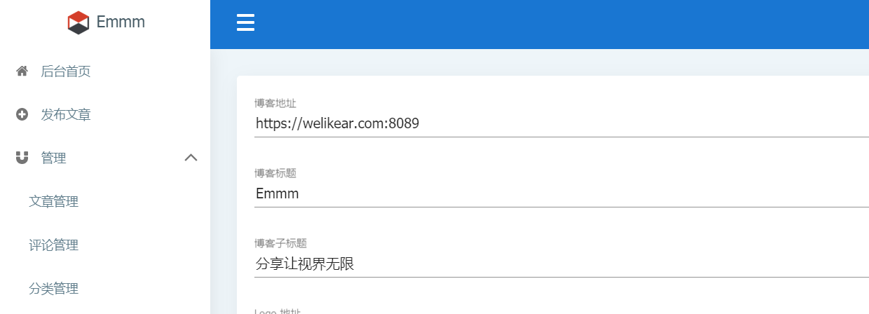 2.登录Nanoblog后台修改Nanoblog的配置文件为域名+端口