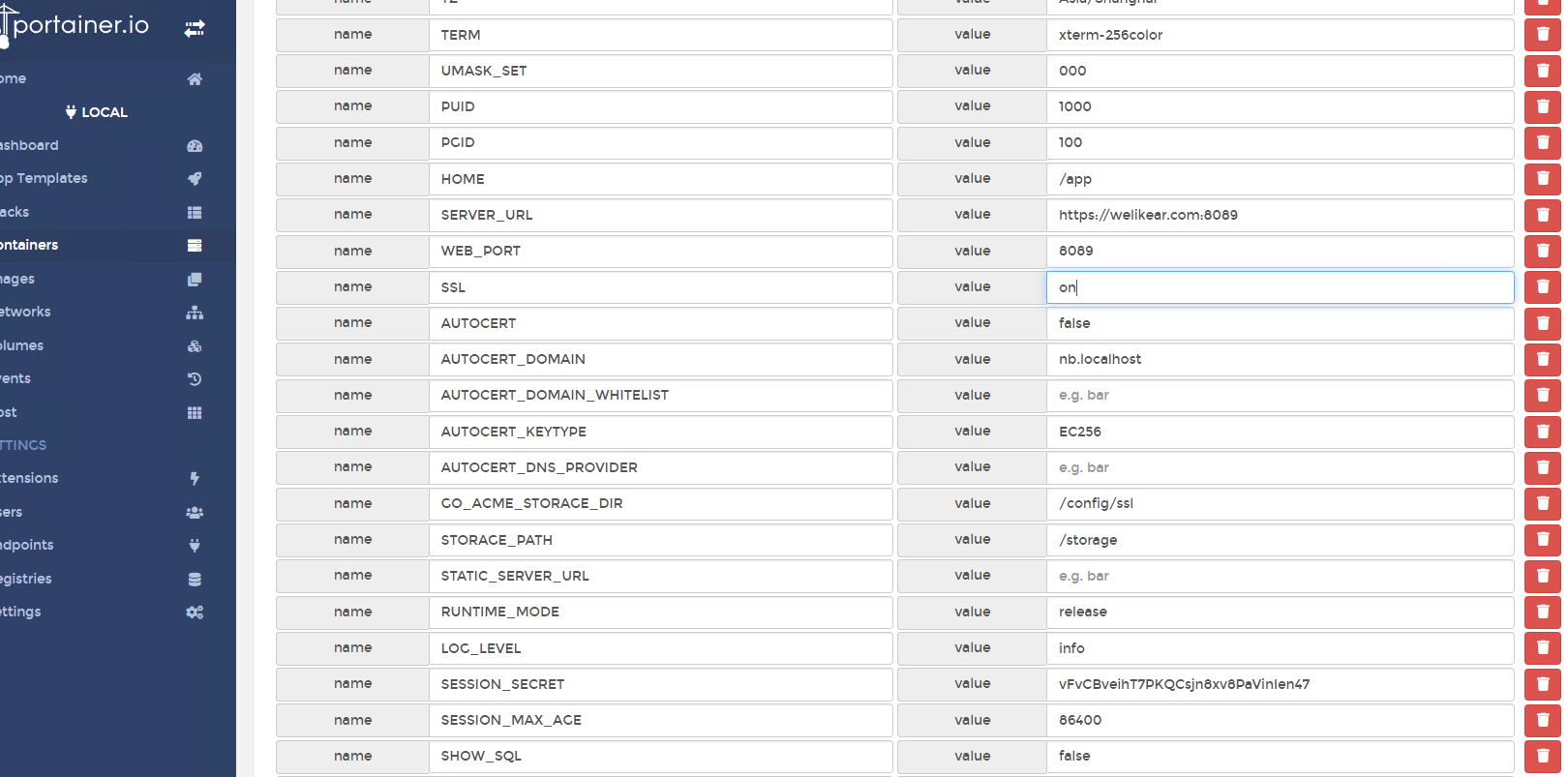 1.更改Nanoblog的环境变量为自己的域名+端口,再次部署容器